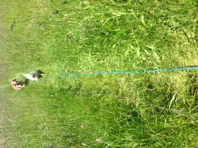 Athene und Rusty beim gemeinsamen Spaziergang.